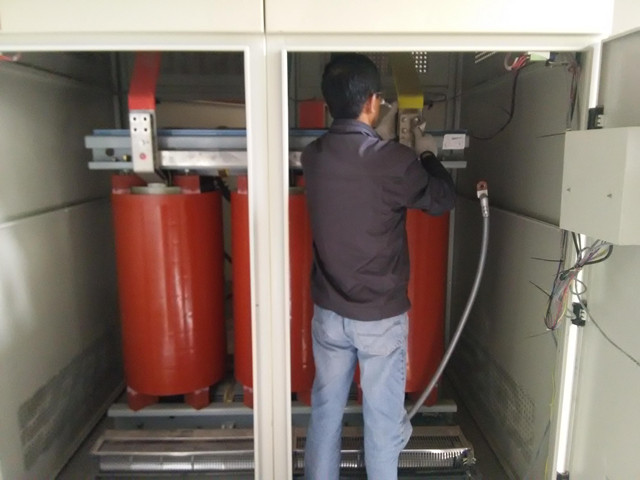 5月10日,市供電公司專業(yè)人員及物業(yè)管理部高低壓電工準(zhǔn)時(shí)到場(chǎng),有序地對(duì)6臺(tái)變壓器及17面高壓進(jìn)線柜、29面低壓柜、電容補(bǔ)償柜等設(shè)備進(jìn)行了交流耐壓試驗(yàn)、直流耐壓試驗(yàn)、直流電阻試驗(yàn)、變比試驗(yàn)、回路電阻試驗(yàn)、開(kāi)關(guān)測(cè)試試驗(yàn)、介質(zhì)損耗角試驗(yàn)、絕緣試驗(yàn)及接地電阻等試驗(yàn),并對(duì)柜內(nèi)所有接線端子、螺栓、儀器儀表、繼電器等部件進(jìn)行了清潔、檢測(cè)和調(diào)試。