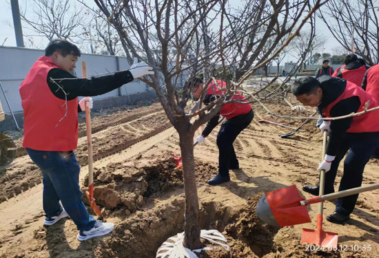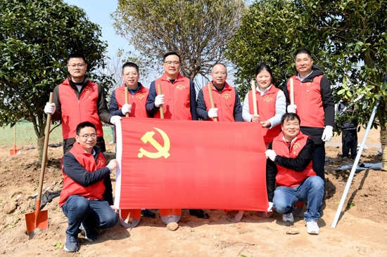 活動(dòng)現(xiàn)場(chǎng)黨旗飄揚(yáng),黨員干部熱情高漲,揮鍬鏟土、扶樹填土,每個(gè)環(huán)節(jié)都銜接有序、一絲不茍,呈現(xiàn)出一片熱火朝天的忙碌景象,展現(xiàn)了黨員干部積極向上的精神風(fēng)貌。在大家的共同努力下,一株株新栽樹苗昂然挺立,錯(cuò)落有致,煥發(fā)勃勃生機(jī),為園區(qū)增添一片綠色。