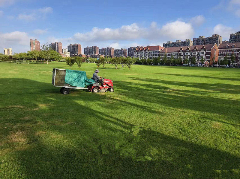增加灌溉“保綠”,科學(xué)澆水潤綠地。采取定時、定責、定地塊的工作方法,用水泵抽灌的方式進行澆水。澆水時間控制在上午9點之前和下午4點以后,最大限度減少水分蒸發(fā),及時供給草坪所需水分。