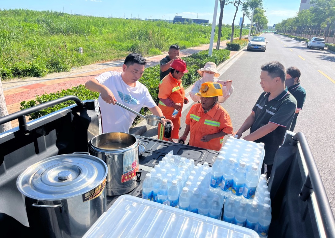 發(fā)放防暑飲品,為工人送清涼。組織各外包單位準備綠豆湯、鹽汽水等防暑降溫飲品,并配送到工人手上,讓每個工人都能及時喝到消暑解渴飲品,感受清涼與關(guān)愛。