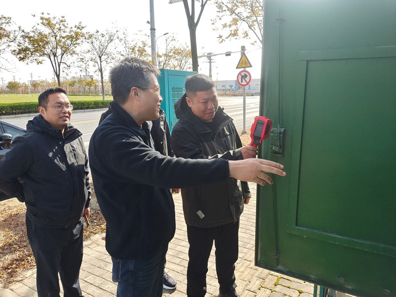 在檢查垃圾中轉(zhuǎn)站、路燈箱變、防汛閘站、河道駁岸時(shí),檢查組認(rèn)真查看安全措施是否按要求嚴(yán)格執(zhí)行到位,運(yùn)行巡檢記錄是否齊全,救生器材是否定期進(jìn)行檢查、維護(hù),閘站消防沙池、消防锨、消防桶等配備是否齊全到位;檢查組還詳細(xì)了解了垃圾壓縮設(shè)備電子圍欄報(bào)警裝置安裝使用情況,并現(xiàn)場(chǎng)使用紅外成像儀監(jiān)測(cè)路燈箱變運(yùn)行情況。