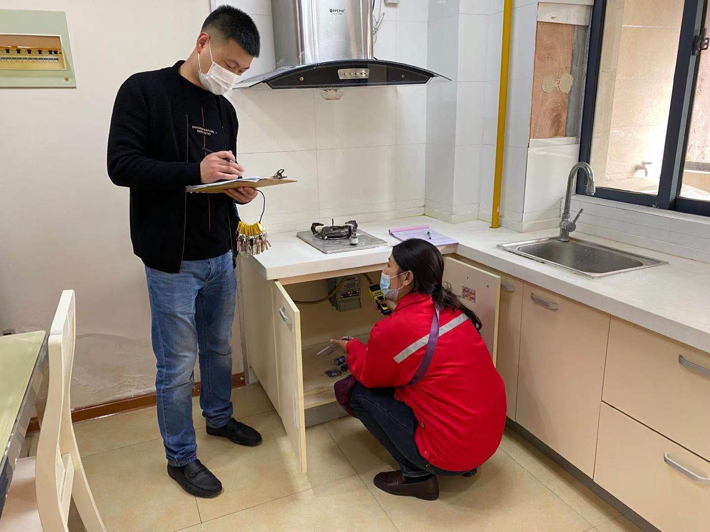 此次重點檢查天然氣接口軟管是否老化,燃氣灶具是否有熄火保護措施,燃氣閥門是否正常使用。在檢查過程中,發(fā)現(xiàn)了人走未斷氣、廚房操作間操作不通風、線路交叉重疊等現(xiàn)象,客戶均能配合整改。
