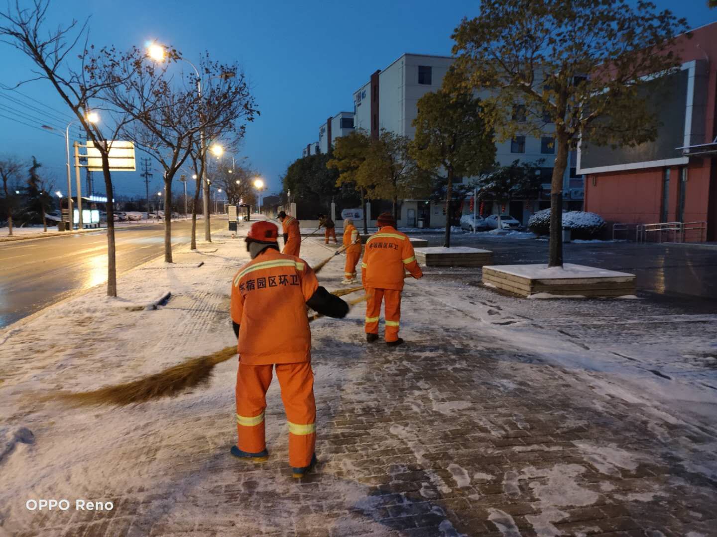 在園區(qū)公舍防疫值守的李佃左說道:“雖說疫情來了,但大家伙的心是牢牢團結(jié)在一起的,這不一看下雪了,擔心復工人員上班時的出行安危,大家伙都忙活起來啦!”當晚,建發(fā)公司員工、園區(qū)環(huán)衛(wèi)人員“相約”在轄區(qū)內(nèi)及園區(qū)道路街頭,在嚴寒中默默堅守,與冰雪爭分奪秒,你鏟我掃、撒布融雪劑,井然有序,從容不亂,大家齊心協(xié)力、配合默契,為保障轄區(qū)內(nèi)通暢竭盡全力。在掃雪除冰的同時,園區(qū)公舍集宿區(qū)工作人員仍然堅守在執(zhí)勤點執(zhí)勤防控,有序做好各項疫情防控工作。