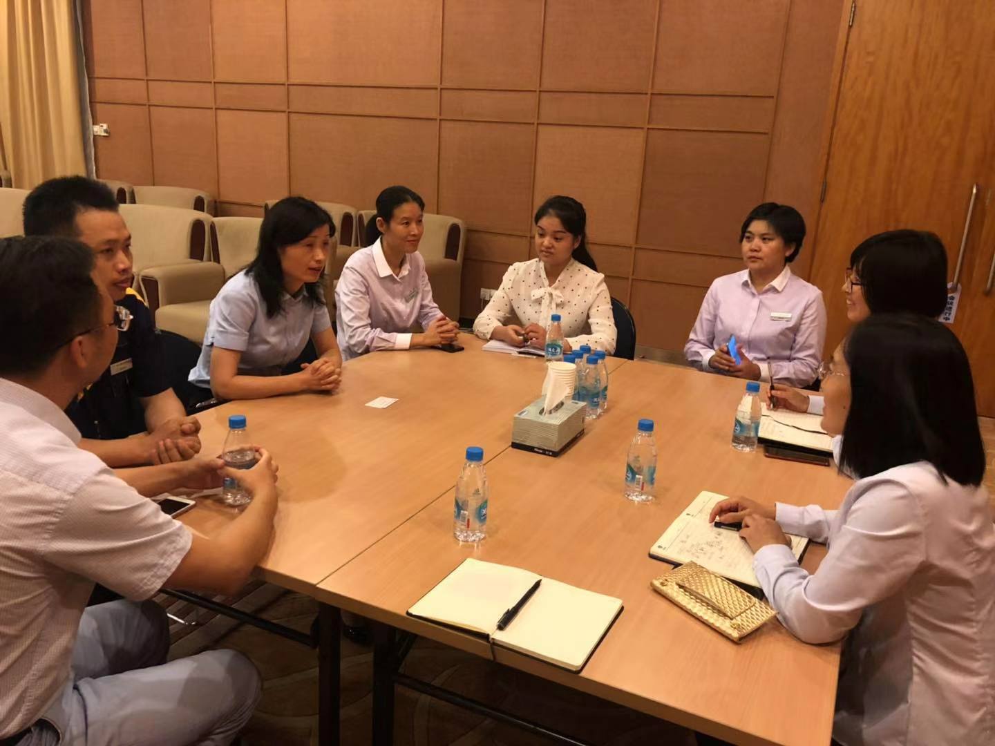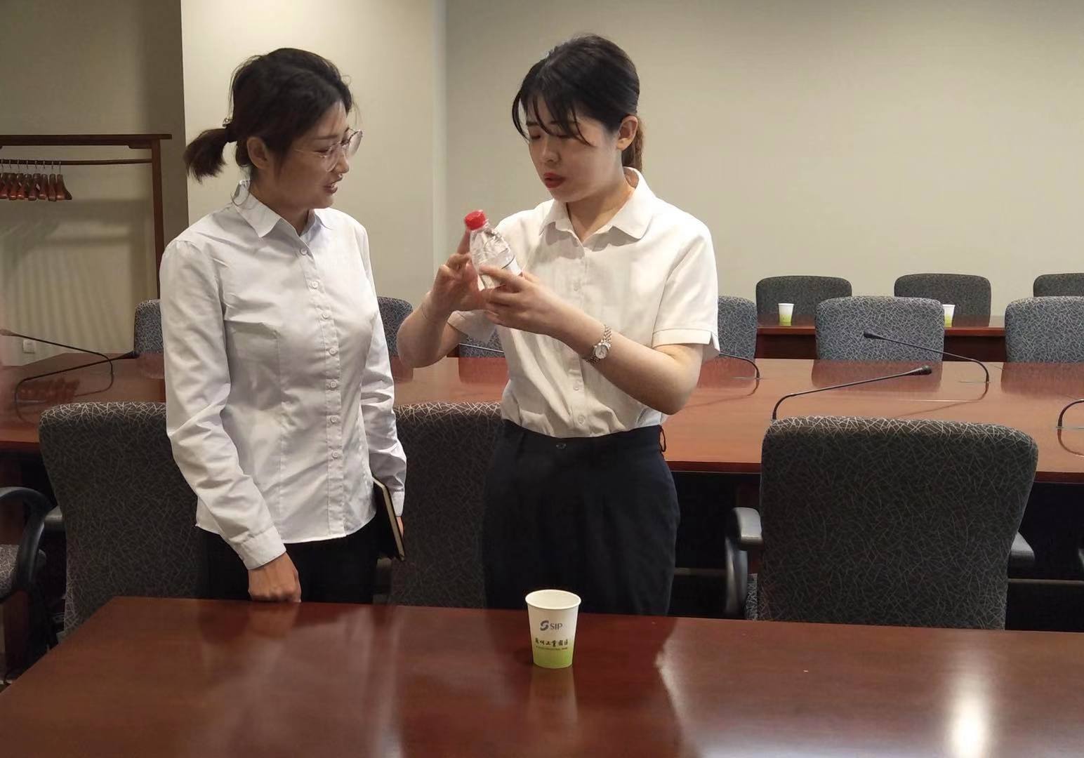 一行人兵分兩路,客服環(huán)境組跟隨蘇州工業(yè)園區(qū)環(huán)境部負責人學(xué)習(xí)會務(wù)服務(wù)的會前準備工作、會后清潔工作,重點學(xué)習(xí)會務(wù)實操服務(wù),工程人員跟隨工程部學(xué)習(xí)會議廳設(shè)備配置和保養(yǎng)。