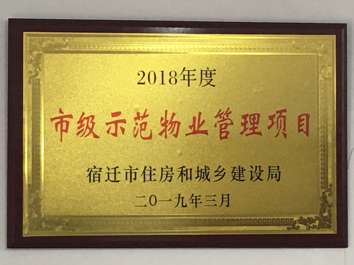 2018年12月,在宿遷市房管局及市物業(yè)管理協(xié)會組織的全市物業(yè)管理項目考核評比活動中,夢家園.融園喜獲“2018年度全市物業(yè)服務(wù)優(yōu)秀示范項目”。