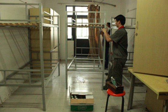 8月24日,處暑雖至,但氣異常悶,光是站著不動就已經(jīng)大汗淋漓,而物業(yè)管理部的維修人員他們揮灑汗水,默默無聞地奮戰(zhàn)在一線,保障著園區(qū)公舍2號樓床鋪及時安裝完成。
